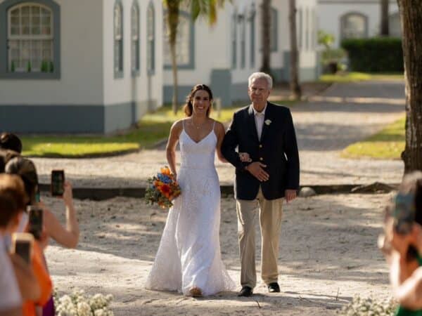 Aluísio de Barros Fagundes levando sua filha Eva para o sim ao amor de Pedro