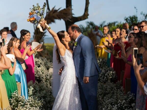 A noiva estava deslumbrante em uma criação exclusiva do estilista Amaro Jr., que destacou sua elegância e personalidade. Após o “sim”, os noivos e convidados aproveitaram uma animada festa, com todos caindo na pista de dança e celebrando até altas horas. Um evento memorável e cheio de amor!