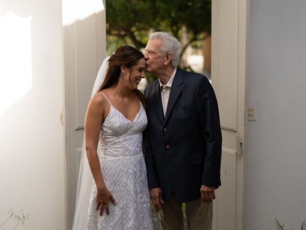 Aluísio de Barros Fagundes levando sua filha Eva para o sim ao amor de Pedro