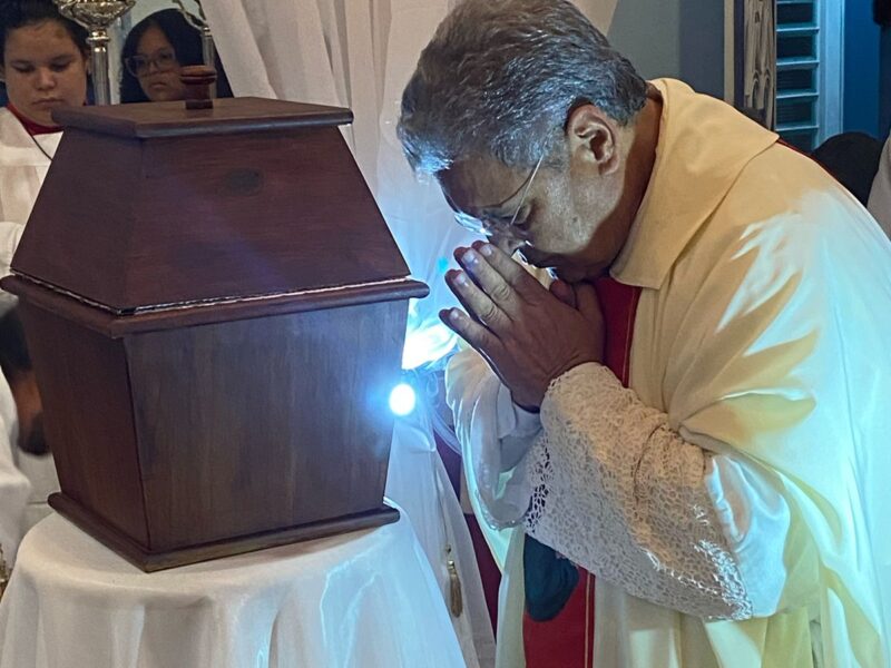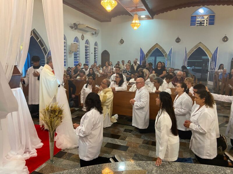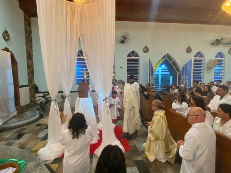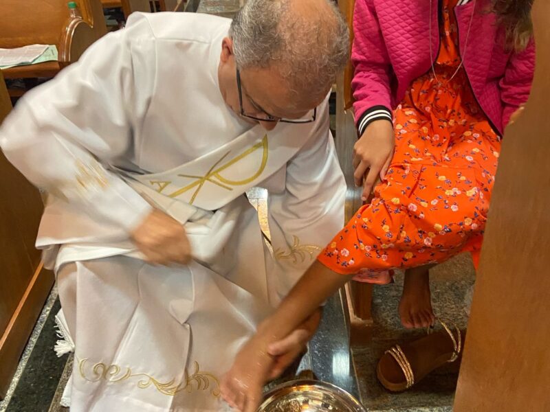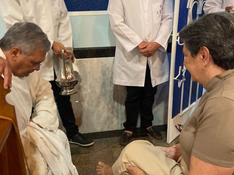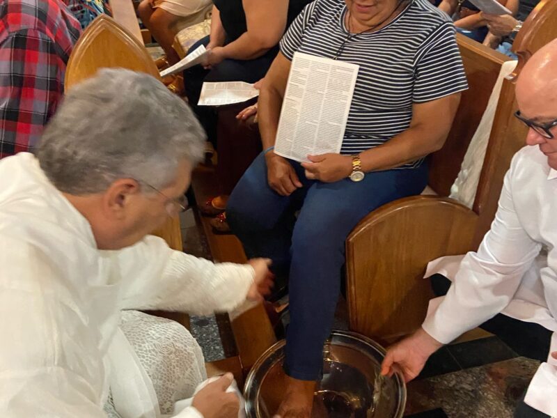 Na celebração Padre Dony em sua homilia ressaltou a importância do cristão viver em comunhão verdadeira: “a fé cristã não pode ser neutra, ou você está a serviço dos pobres, dos excluídos e das minorias, ou você não está seguindo o evangelho. Viver a Eucaristia é comprometer-se com o outro, com o tema da Campanha da Fraternidade/2025,é fazer da comunidade cristã um lugar de resistência contra o mal, e assim fazer o bem sem excluir ninguém! No lava a pés fica a lição de um Deus que se inclina e serve, mostrando que a dignidade humana é reconhecida e respeitada!” Assim aconteceu a cerimônia de Lava pés, e encerrando a celebração eucarística com o translado do Santíssimo Sacramento, que estará exposto para adoração e vigília até hoje às 14 horas.