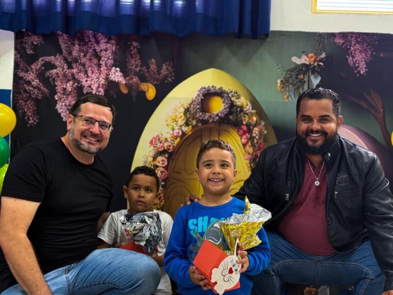 O Vice-Prefeito Damião Sousa também participou da entrega e ressaltou o compromisso da gestão com o bem-estar das crianças. “Nosso objetivo é sempre cuidar com carinho dos nossos pequenos. Ver o sorriso de cada um ao receber o seu ovo de Páscoa é gratificante e mostra que estamos no caminho certo”. Declarou Damião.