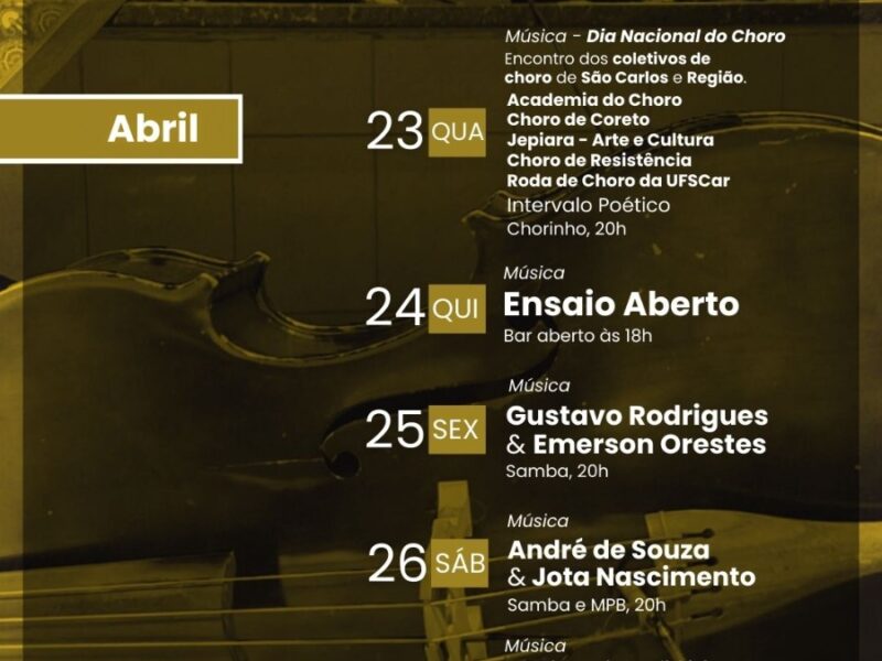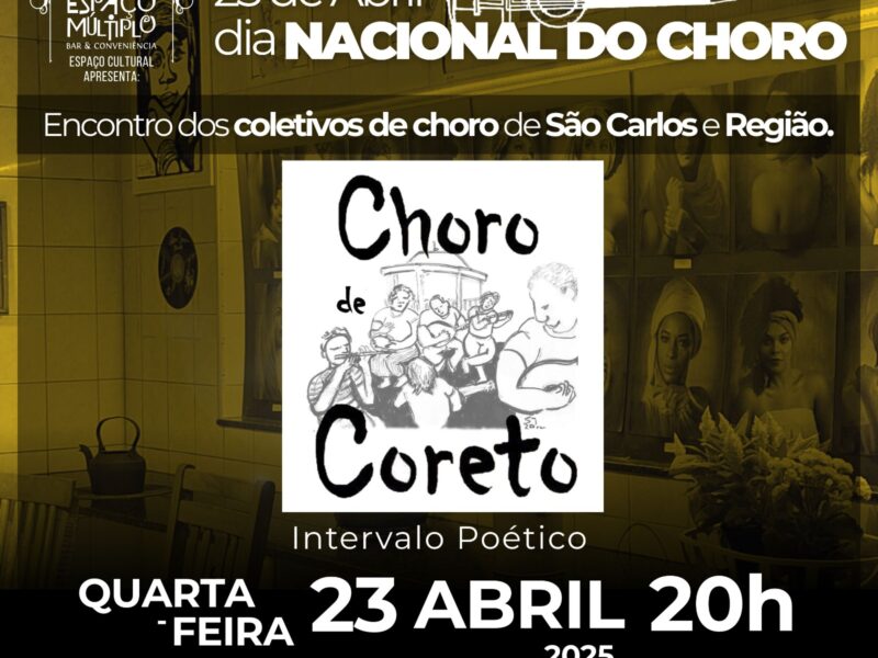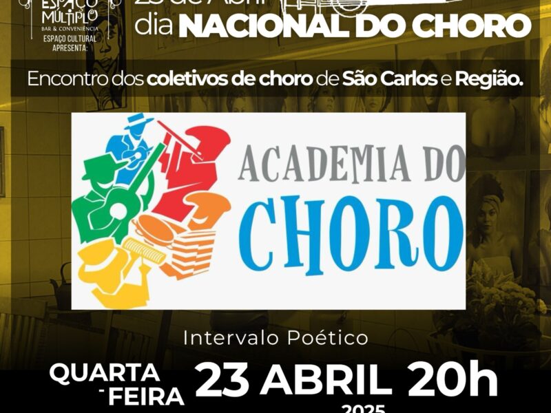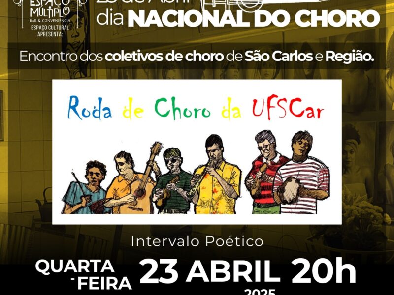 O Espaço Múltiplo promove Roda de Choro nesta quarta-feira (23), a partir das 20h, no seu Intervalo Poético, com Encontro dos Coletivos de Choro de São Carlos e Região.