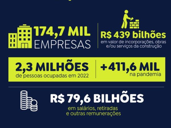Apesar de alta no emprego durante a pandemia, a pesquisa sobre a indústria da construção revela que houve queda no nível do salário médio mensal. Em 2019, a remuneração média era de 2,3 salários mínimos, terminando 2022 em 2,2 salários mínimos – ligeira recuperação ante 2021 (2,1 salários mínimos). Cada ano considera o respectivo valor do salário mínimo. Em 2022, por exemplo, o valor era R$ 1.212.