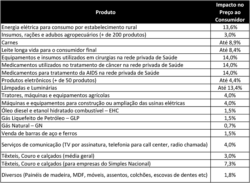 De acordo com planilha divulgada pela entidade, a Energia elétrica para consumo por estabelecimento rural pode subir 13,6%; as carnes poderão ter um aumento de 8,9% e o leite longa vida pode subir até 8,6%. Medicamentos utilizados na rede privada para combate ao câncer e AIDS podem subir até 14%.