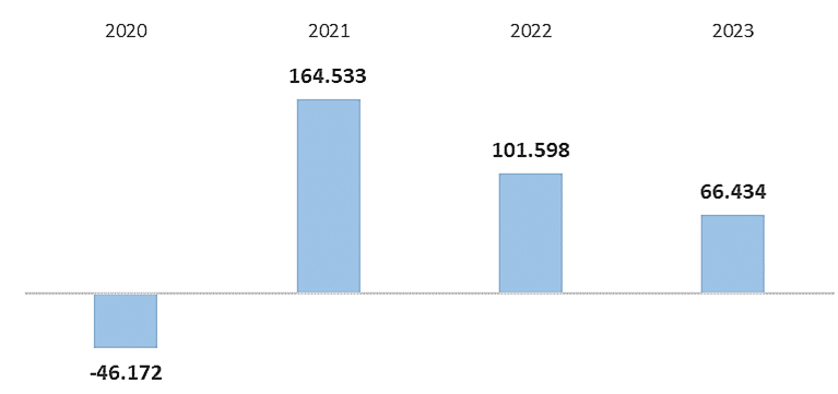 Os dados são do CAGED (Cadastro Geral de Empregados e Desempregados), divulgados pelo Ministério do Trabalho e Emprego. Em 2022 o estoque de empregos neste segmento era de 15.830 e em 2023 subiu para 16.047, registrando um modesto aumento de 1,5%.