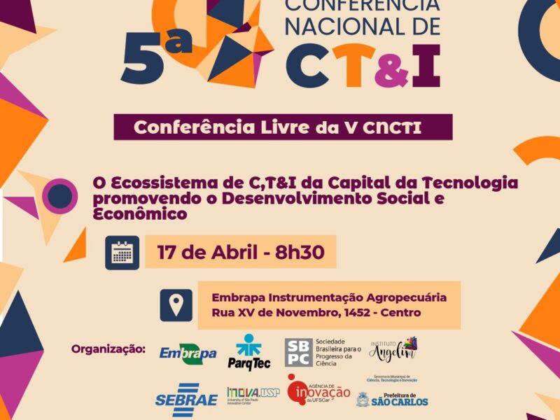 A organização da conferência é uma iniciativa conjunta da Agência de Inovação da UFSCar, Embrapa, Inova USP, Instituto Angelim, ParqTec, Sebrae, Secretaria Municipal de Ciência, Tecnologia e Inovação e Sociedade Brasileira de Progresso da Ciência (SBPC).