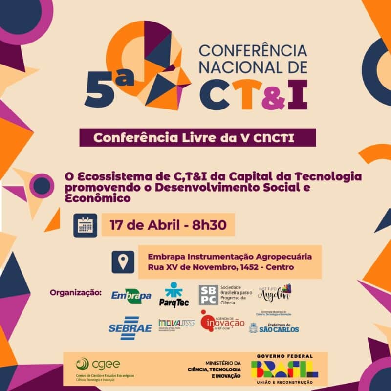 A 5ª Conferência Nacional de Ciência, Tecnologia e Inovação é organizada pelo Ministério de C&T e acontecerá nos dias 4, 5 e 6 de junho, em Brasília e irá analisar os programas, planos e resultados da Estratégia Nacional de Ciência, Tecnologia e Inovação (ENCTI) 2016-2023, a fim de propor recomendações para a elaboração da ENCTI 2024-2030.