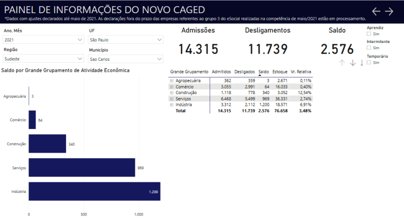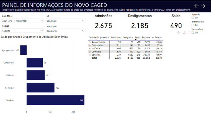 O Cadastro Geral de Empregados e Desempregados (Caged) do Ministério da Economia mostrou que os cinco primeiros meses do ano trouxeram saldo positivo no número de carteiras assinadas em São Carlos (SP) com 2.576 vagas abertas. Só em maio foram 490 novos contratos no formato da lei trabalhista CLT.