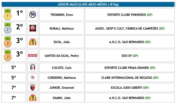 Embora os três judocas não tenham garantido a classificação, demonstraram grande desempenho e provaram estar entre os melhores do Estado de São Paulo.